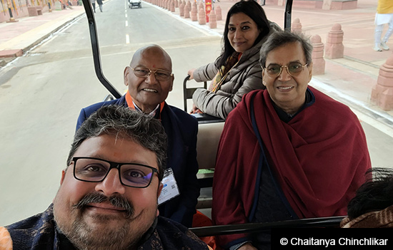 The journey back was eventful. Our charter flight was cancelled on the 22nd on account of bad weather, limited take-off/landing slots and pilot operating hours, so after waiting in the Ayodhya airport lounge for a few hours, we stayed back in a hotel in Ayodhya, arranged for us by the organisers… and travelled back to Mumbai on the 23rd afternoon.